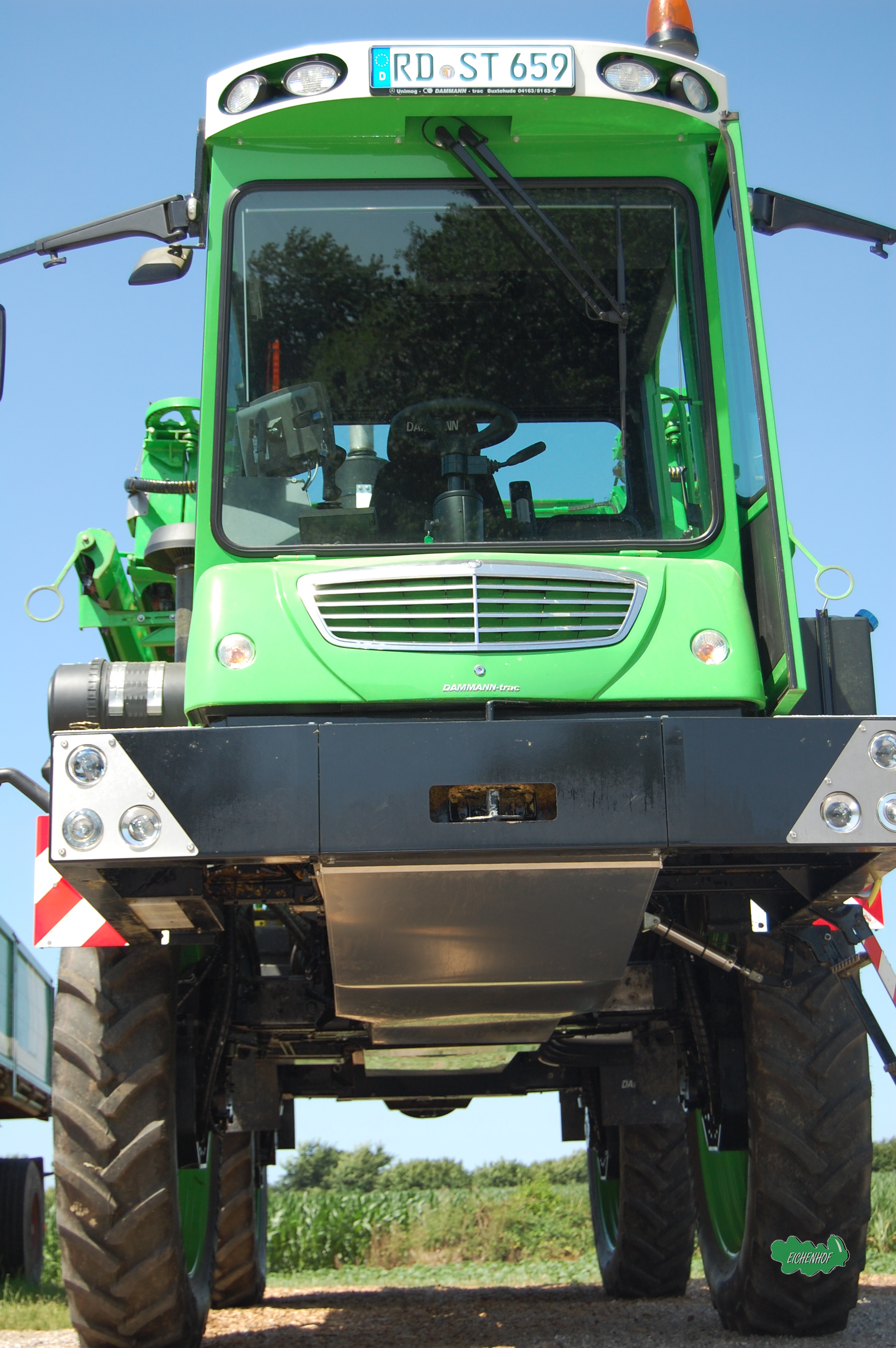 Pflanzenschutz führen wir ab der Saison 2000 mit verschiedenen Maschinen der Firma Dammann durch. Die Maschinen sind für unterschiedliche Spur- und Fahrgassenbreiten geeignet und durch das höhenverstellbare Fahrwerk für die pflanzenschonende Rapsblüten- und Maiszünslerbehandlung geeignet.